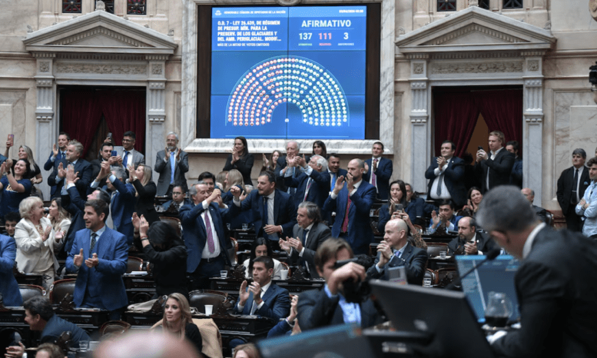En la Cámara alta la distribución del voto había sido similar. Los senadores por Entre Ríos Joaquín Alberto Benegas Lynch y Romina María Almeida (La Libertad Avanza) acompañaron la iniciativa del gobierno, en tanto que el peronista Adán Bahl (Justicialista) se opuso.